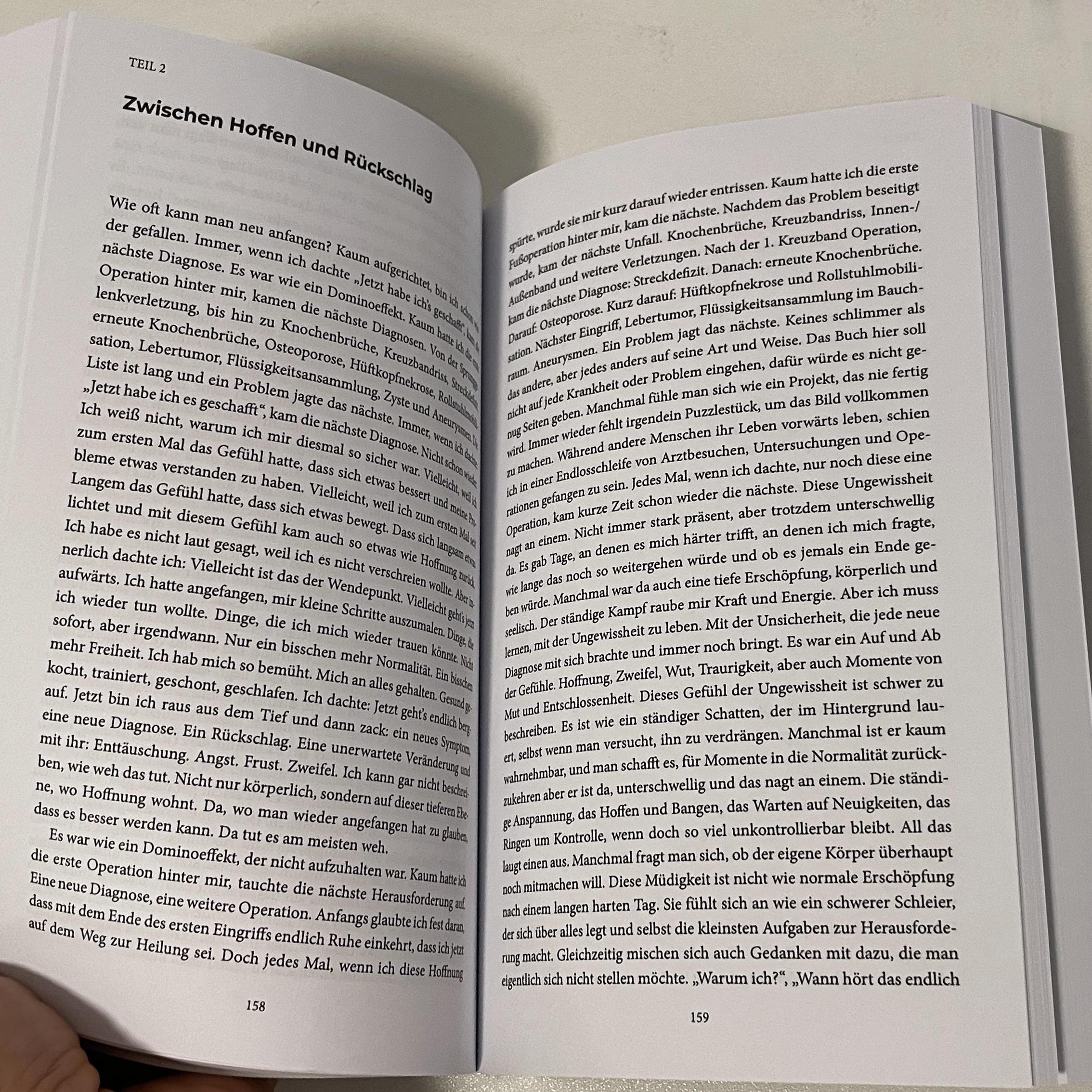 Dieses Buch erzählt von meinem persönlichen Weg durch Krankheiten und Schmerz – ehrlich, ungeschönt und doch voller Hoffnung. Ich teile meinen Weg durch schwere Zeiten voller Zweifel, Trauer, Verluste und innerer Kämpfe, aber auch Momente der Hoffnung, stillen Erkenntnissen, kleinen Lichtblicken und des Neubeginns. Es ist kein klassischer Ratgeber über Heilung, sondern über das innere Chaos, vom Stillstehen und Weitergehen, vom Fallen und Wiederaufstehen. Ich schreibe über das Verlieren und Wiederfinden, über Verlust, Zweifel und das Ringen mit mir selbst. Über Zeiten, an denen nichts mehr geht, und über jene, an denen ein kleiner Funken Hoffnung neue Kraft schenkt, um nicht aufzugeben.